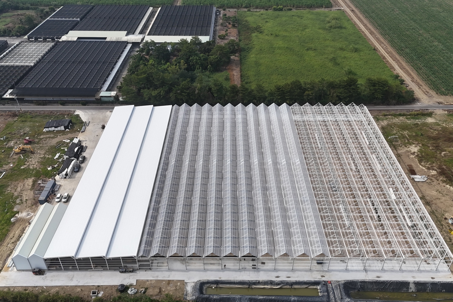The typhoon that hit Taiwan caused local damage and led to a temporary pause. The greenhouse itself remained intact. Construction has now fully resumed under the guidance of our supervisors and a local construction team.